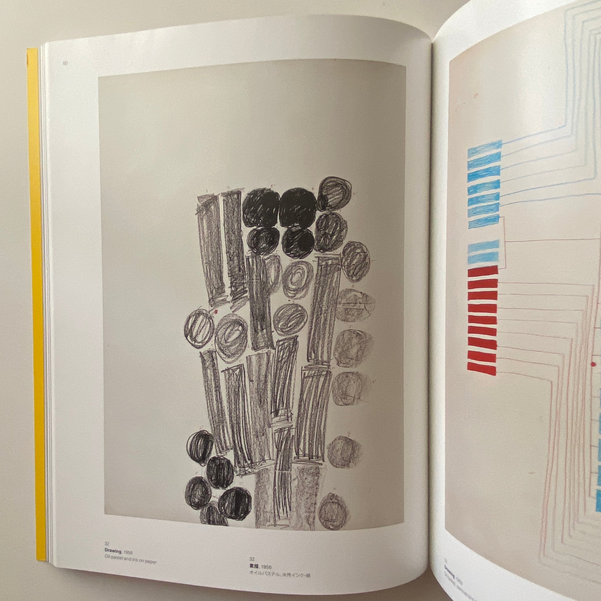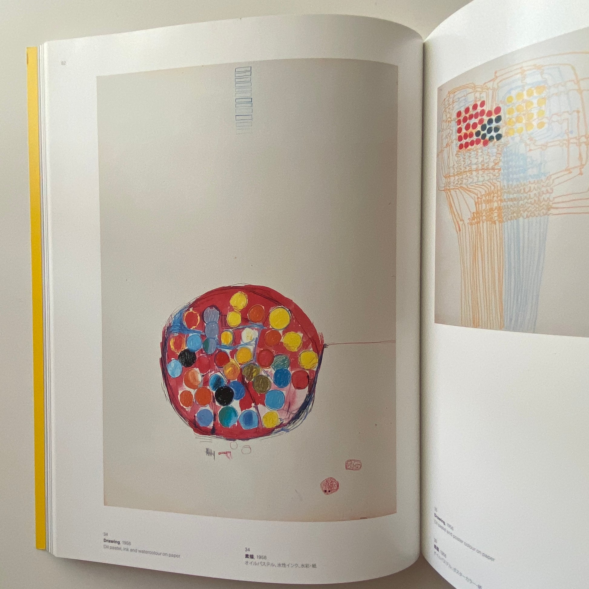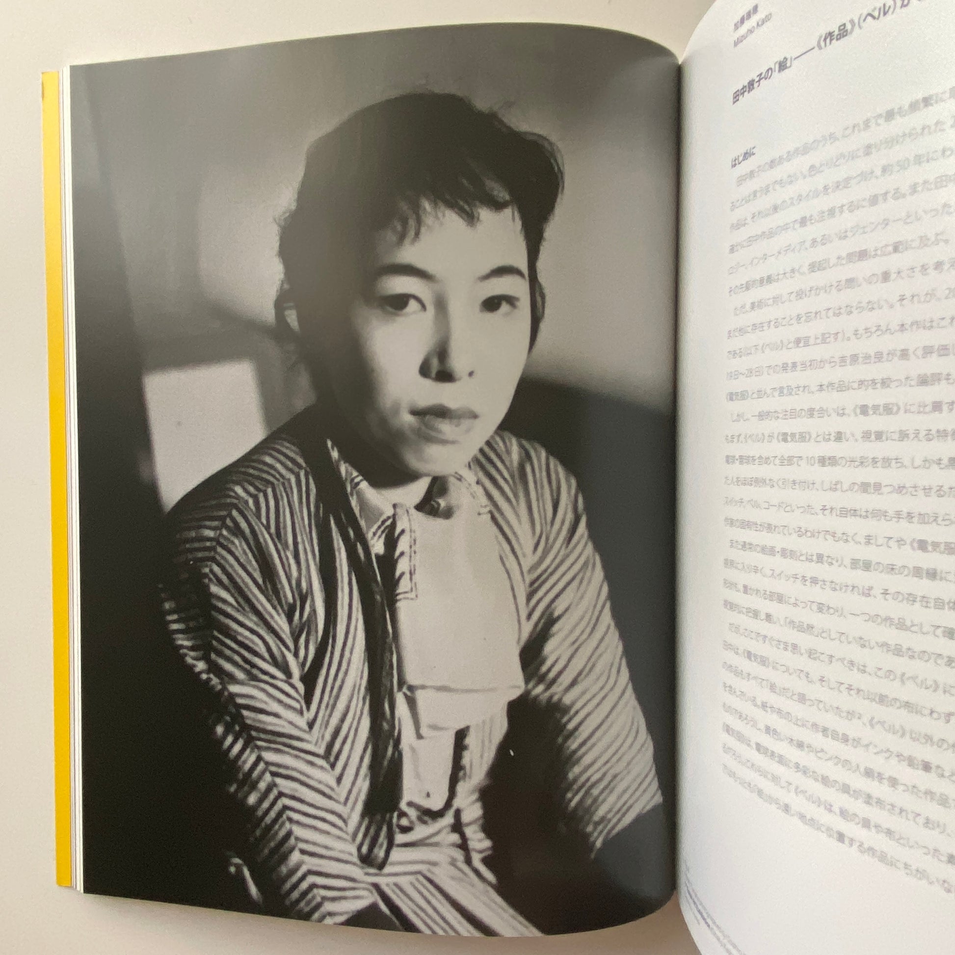 A retrospective exhibition catalog of Atsuko Tanaka, featuring colorful illustrations of her early works as well as drawings that led to her representative work “Electric Clothes” exhibited at the avant-garde art group “Gutai Art Association.