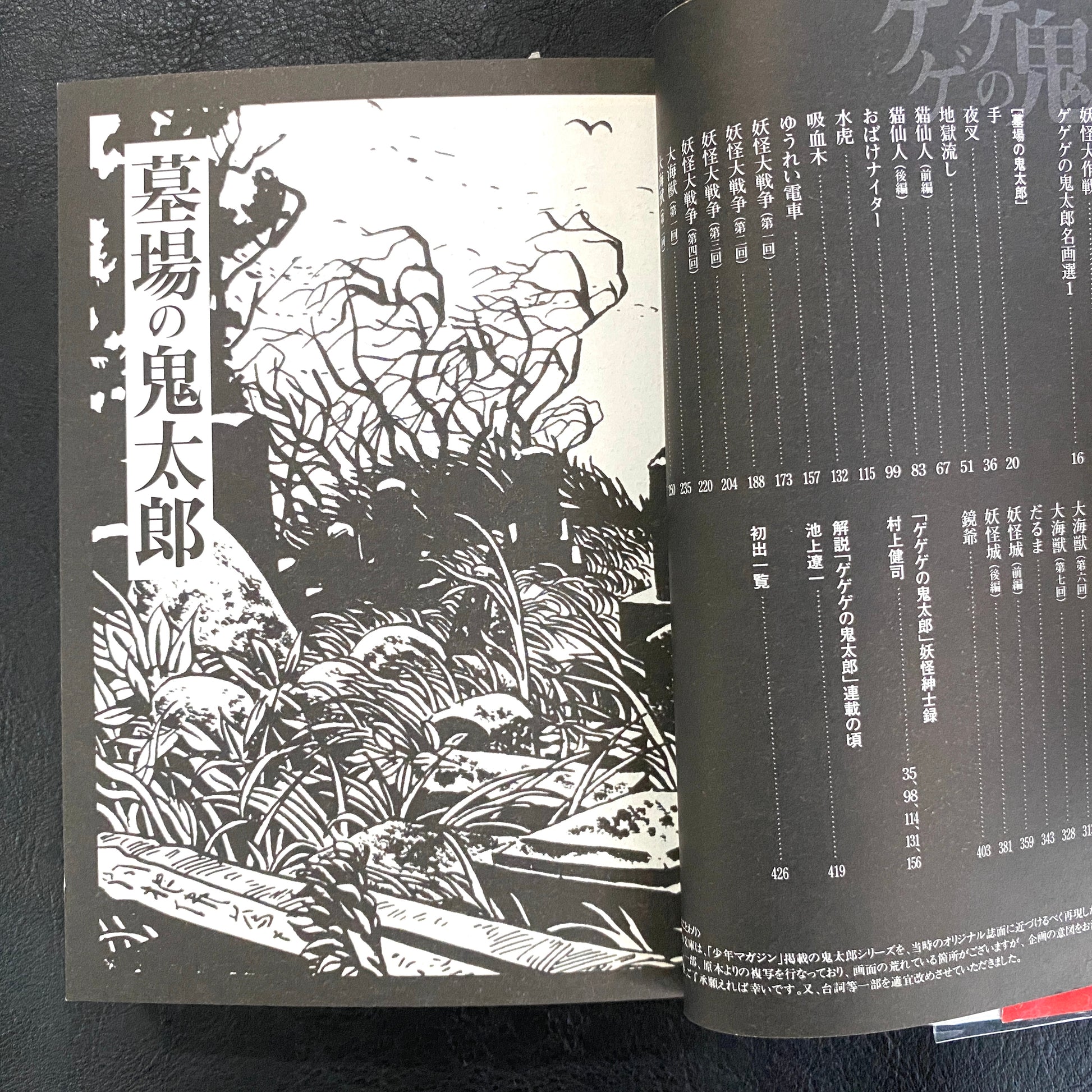 Graveyard Kitaro - an impressive debut work! Contains 11 stories, including his debut in Weekly Shonen Magazine, ‘Hand’, ‘Jigoku Nagashi’, ‘Neko Senjin’, ‘Obake Niter’, ‘Vampire Tree’, ‘Ghost Train’ and ‘Yokai Taisen’.